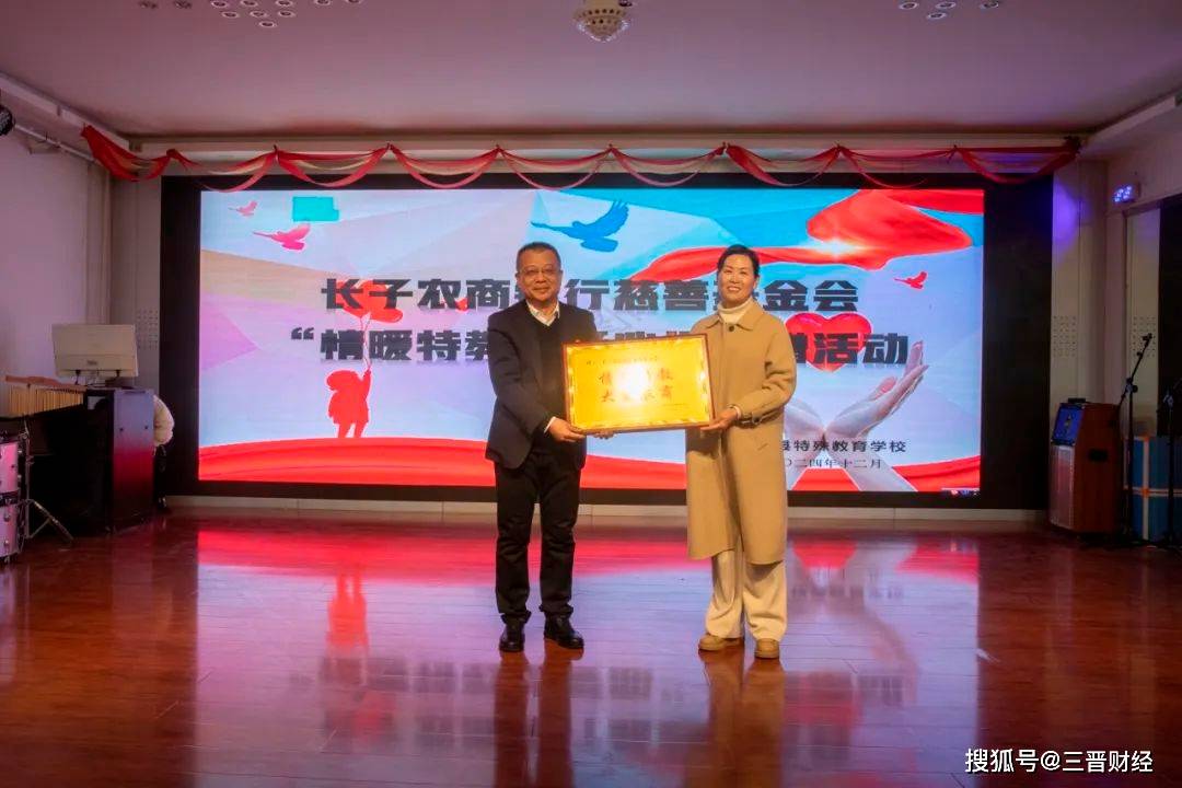 县特殊教育学校校长贾慧平对学校及学生基本情况进行了简要介绍,县教育局领导胡正平对本次捐助活动进行充分的肯定与赞誉,在一阵阵热烈的掌声中,长子农商银行党委书记李玲向特殊教育学校捐赠了资助金,县特殊教育学校校长贾慧平向长子农商银行慈善基金会赠送了牌匾,在场人员共同见证了这一温暖而有意义的爱心时刻。